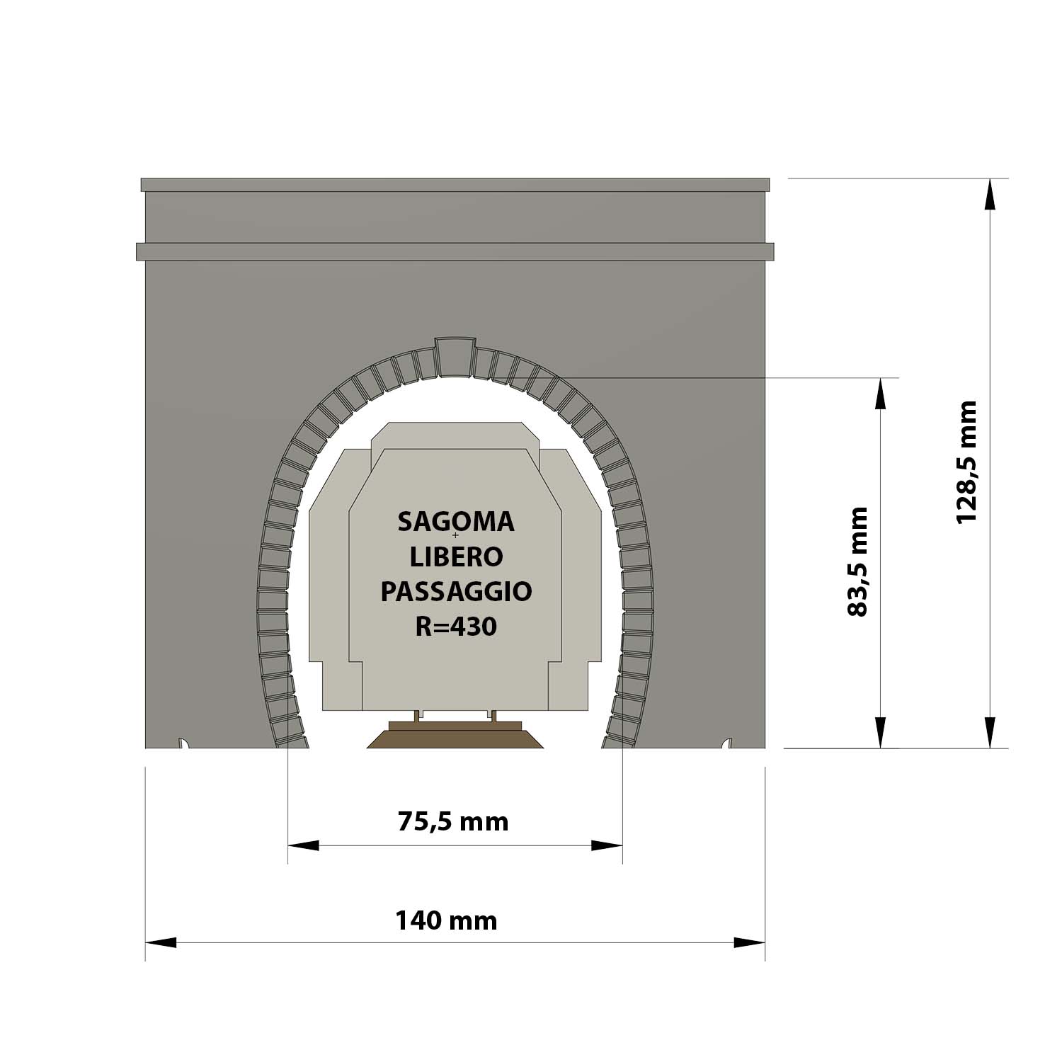 Il prodotto è pensato per essere abbinabile al tunnel codice 1051.R430 per curve strette (raggio R2) e agli accessori come una colonna in pietre per portali con codice 1052 e ai muri laterali di contenimento codice 1053.