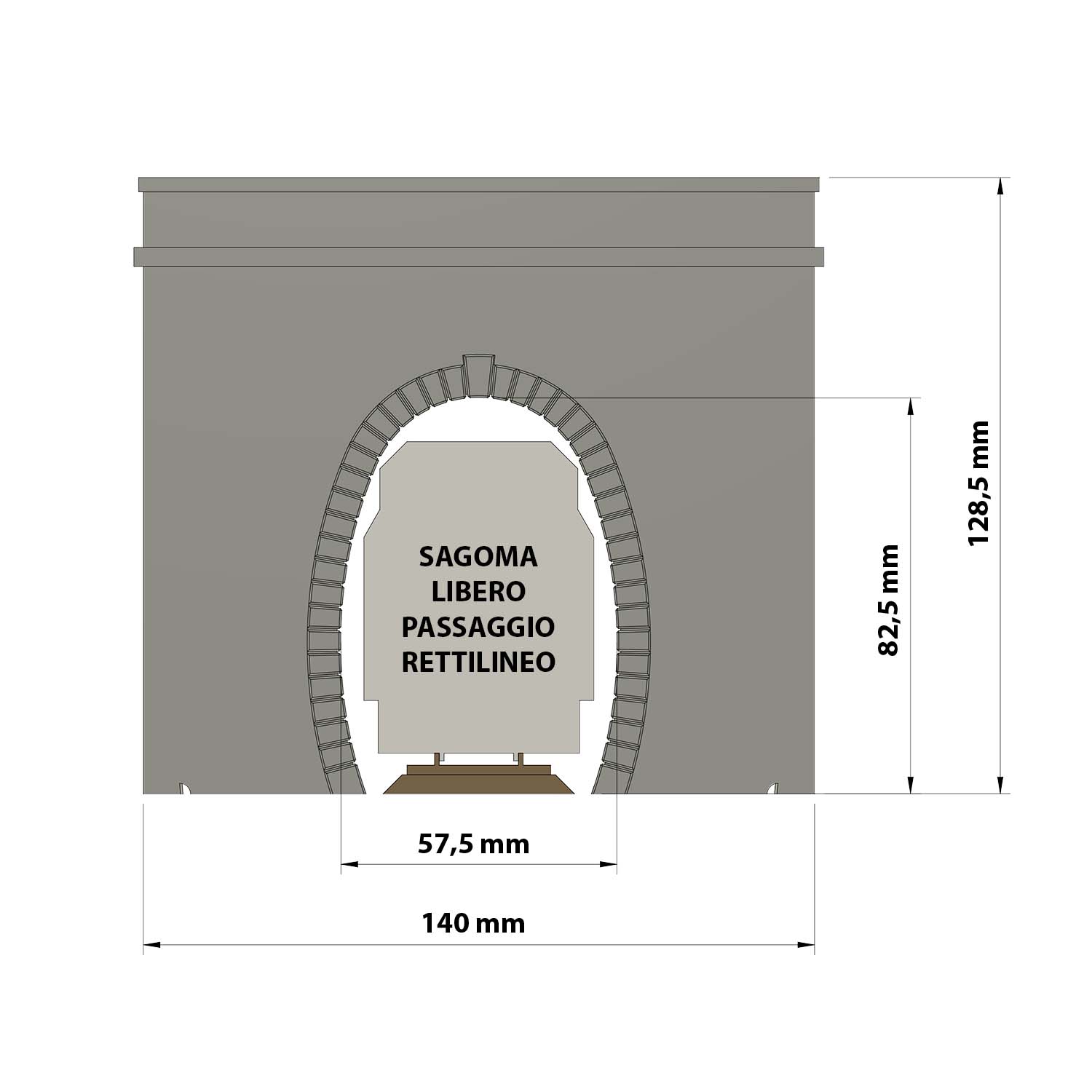 Riproduzione in scala H0 (1:87) di un portale di galleria per linee ferroviarie a binario singolo. Adatto solo a linee in rettilineo grazie all'ingresso galleria ridotto in ampiezza per un maggior realismo, simile al vero. Adatto sia a linee con catenaria che senza.
