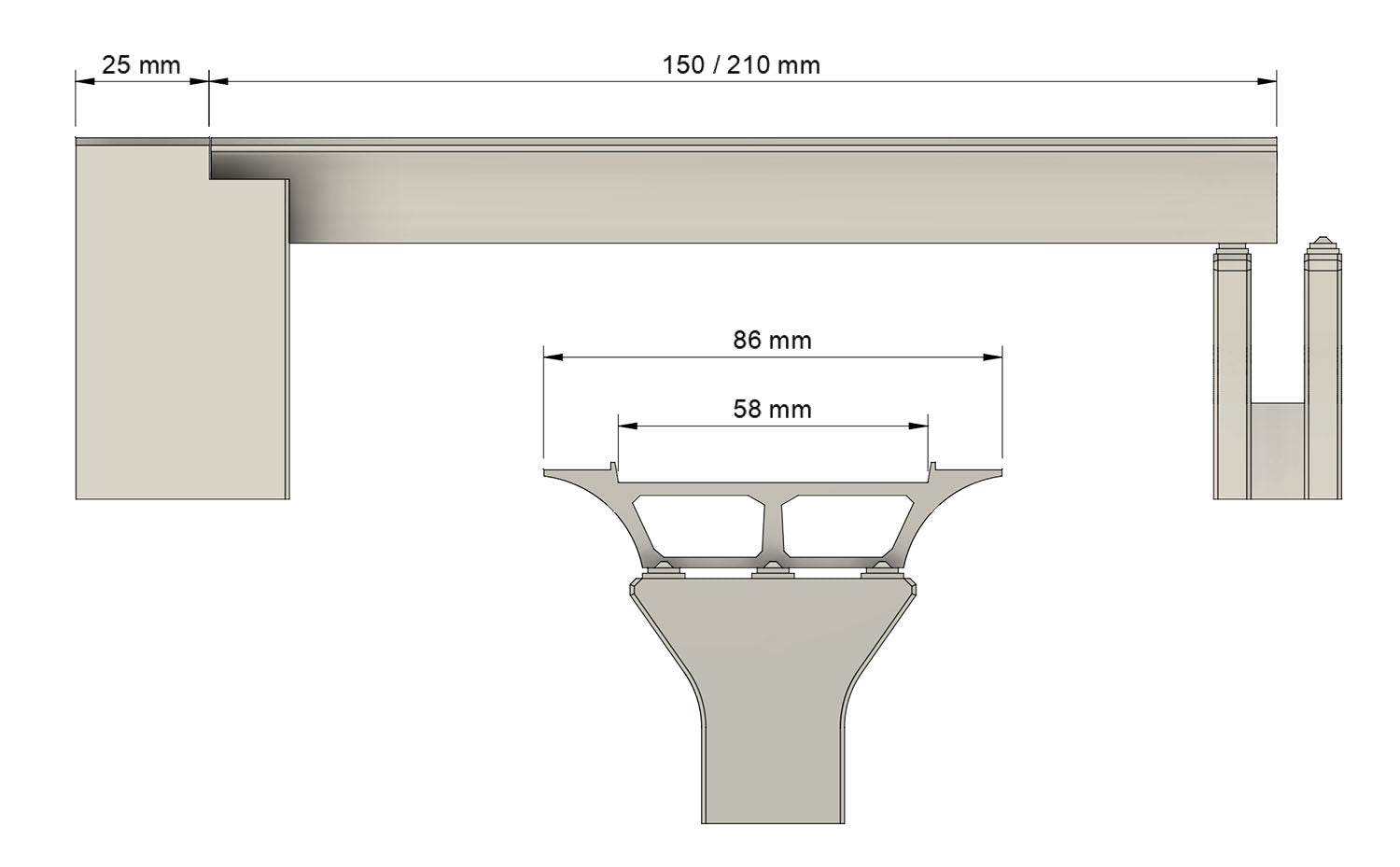 - Lunghezza personalizzabile da un minimo di 150 mm a un massimo di 210 mm