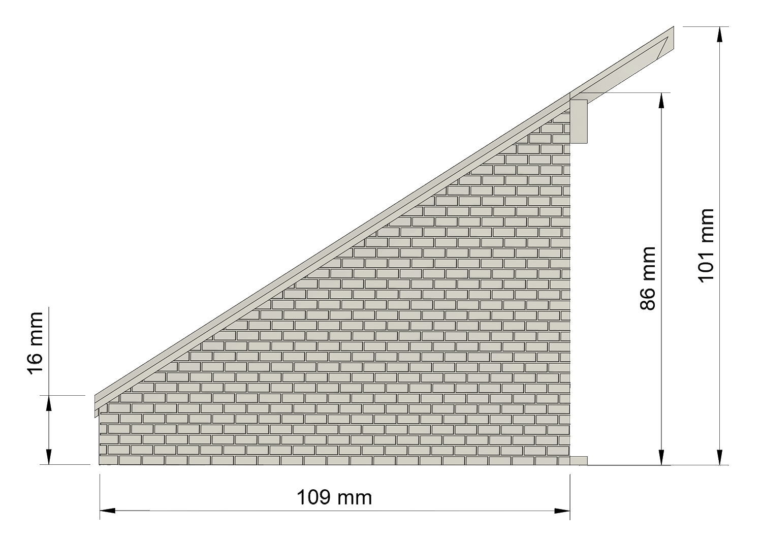 Reproduktion eines Paars seitlicher Stützmauern für zweigleisige Portale (links und rechts) im TT-Maßstab (1:120).