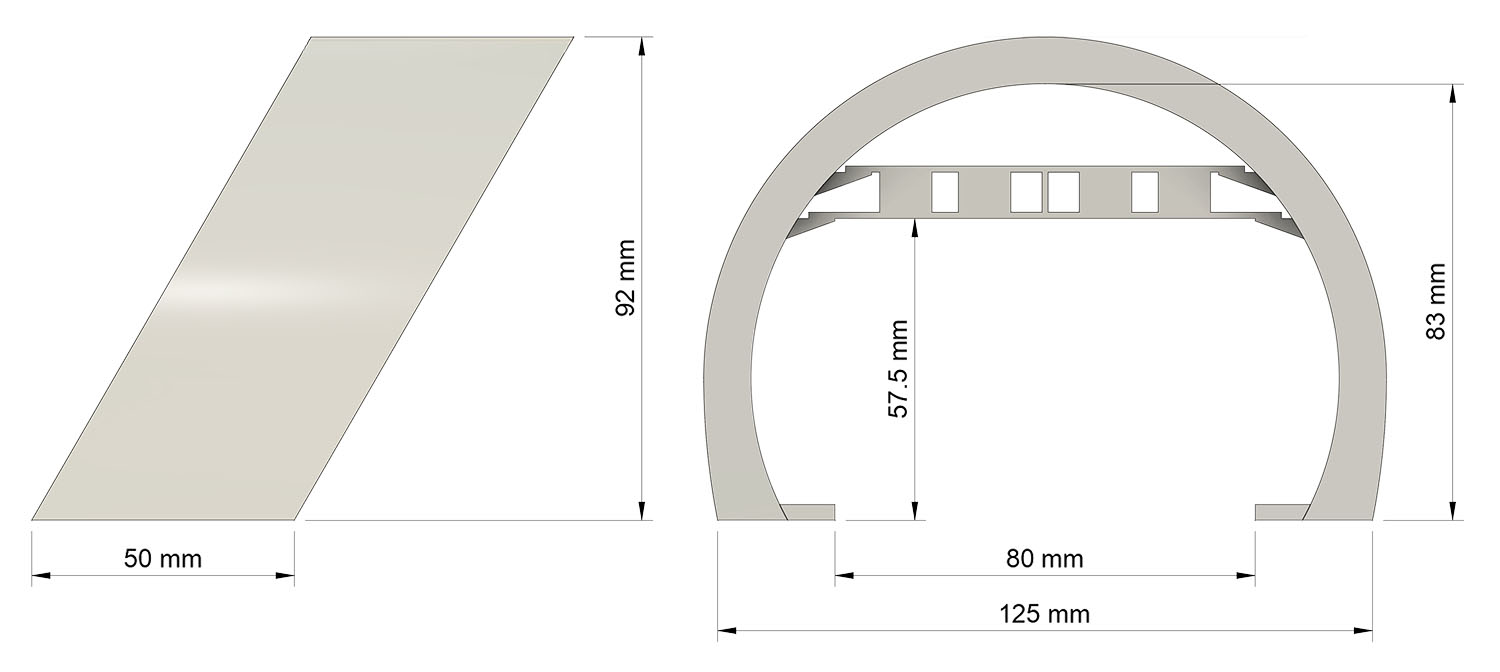 Der Artikel wird mit einem Portal geliefert, das auch als Innentunnel für eine Länge von 50 mm fungiert, einer Abschlusswand, die am Ende des Tunnels angebracht wird, und einem Schilderrahmen, der mit den entsprechenden Hinweisen an der oberen Wand des Tunnels angebracht wird Zeichen.
