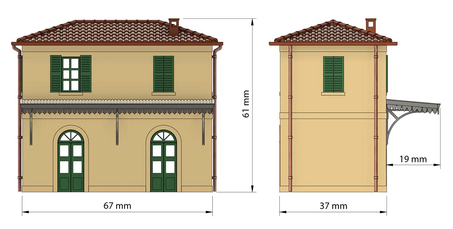 Lebensgetreue Reproduktion im TT-Maßstab (1:120) eines Passagiergebäudes eines kleinen Bahnhofs oder einer einfachen Haltestelle einer Nebenstrecke. Auf der Strecke Modena – Sassuolo existiert der Bau noch, die Haltestelle wurde jedoch abgeschafft.