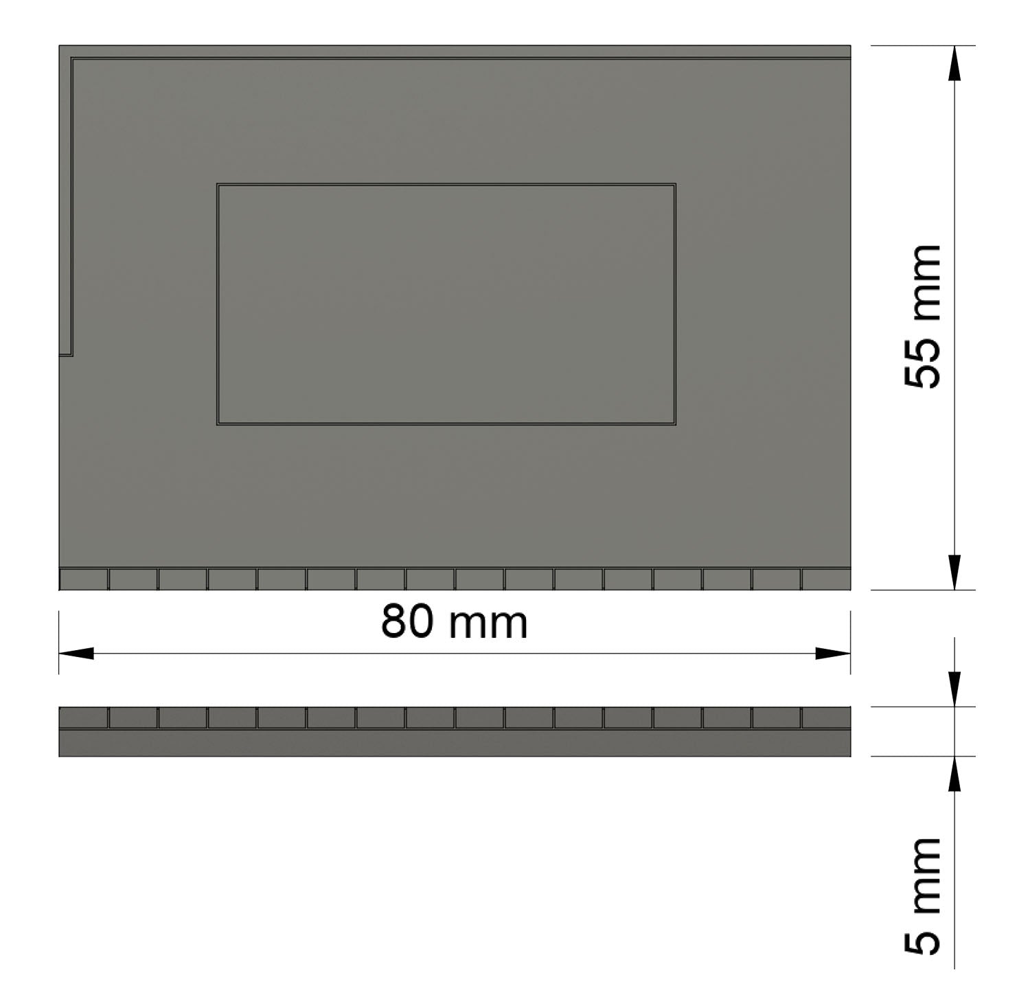 Der Artikel ist 3D-gedruckt mit dunkelgrauem PLA-Material und einer rauen, strukturierten Oberfläche, einschließlich Steinen, die nur auf einer Seite vorhanden sind.