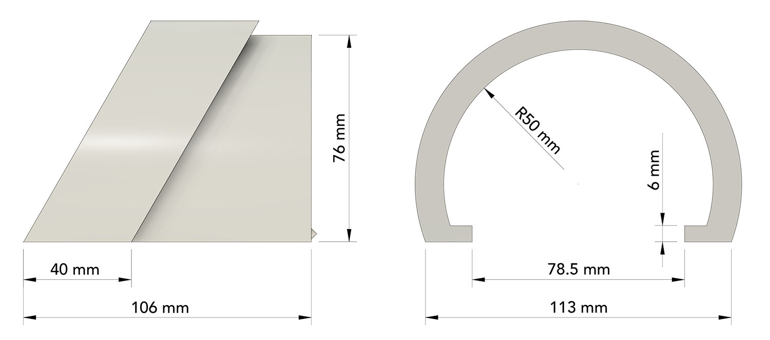 Das Portal besteht aus einem Stück mit einer maximalen Innentiefe von 106 mm und einer Außentiefe von 40 mm. Lieferung unbemalt.