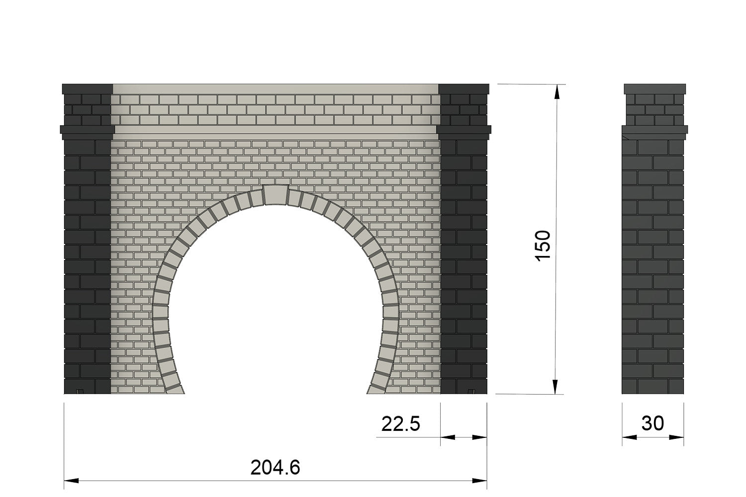 Das Säulenpaar links und rechts besteht aus jeweils 6 Teilen, die zusammengeklebt werden. Zur präzisen Positionierung sind sie mit Gelenken ausgestattet. Die Oberflächenbeschaffenheit der Steine ist strukturiert (rau).