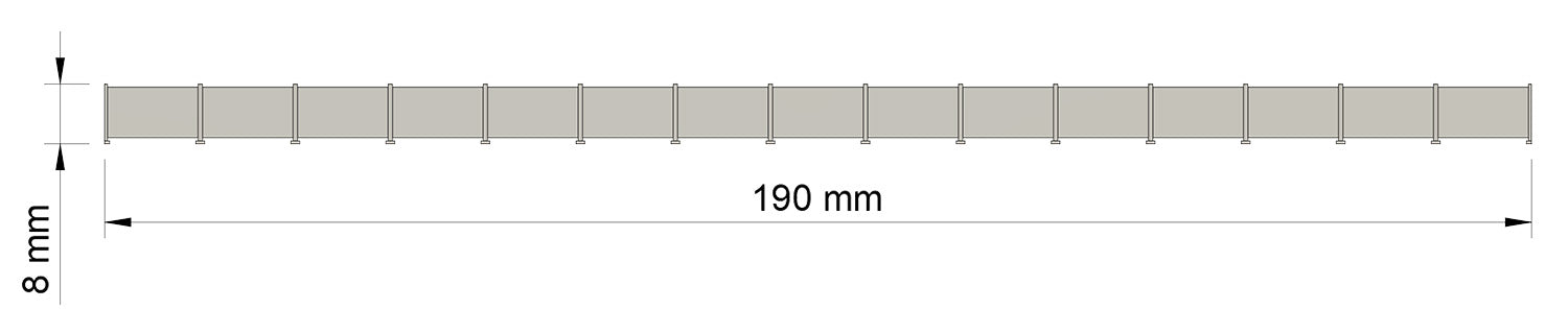 Der Bausatz besteht aus 5 Abschnitten à 190 mm Länge, also insgesamt 950 mm, und kann mit weiteren Elementen gleichen Typs erweitert werden.