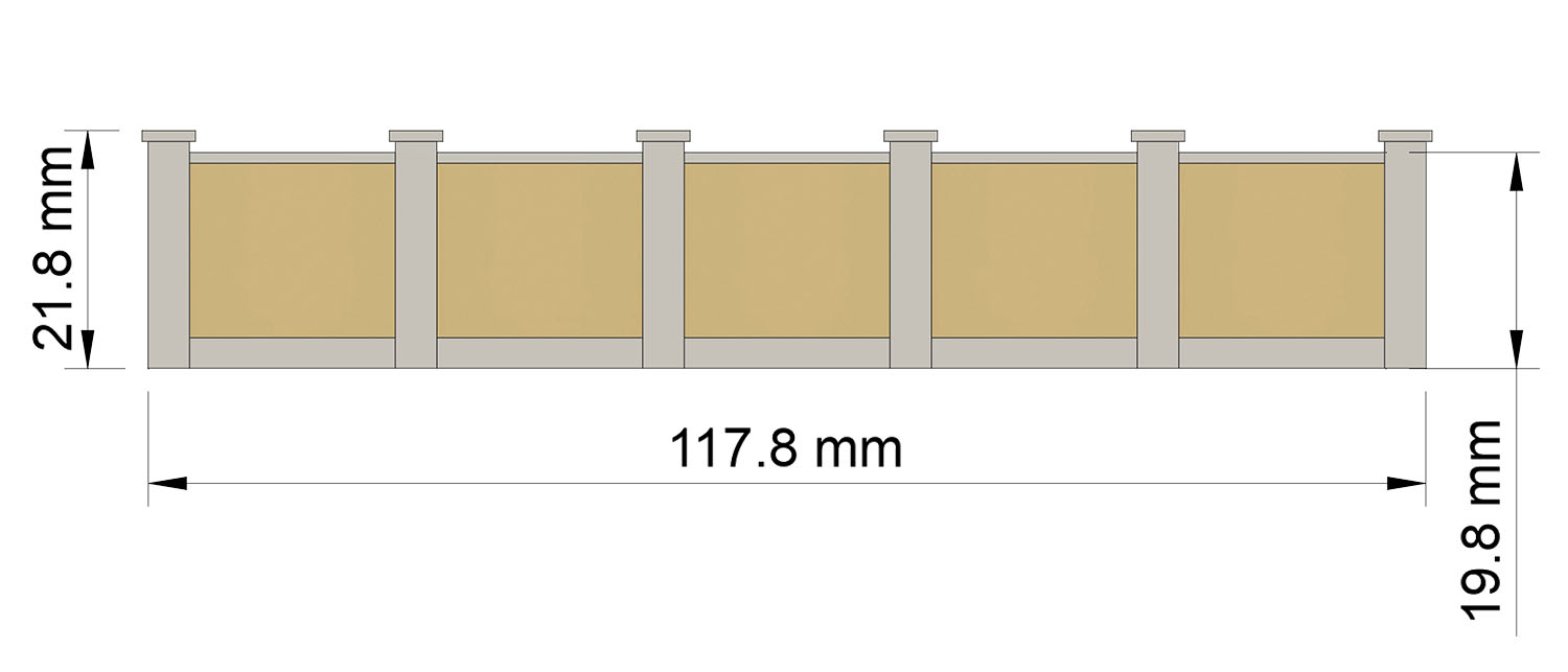 Die Wände werden mit einer betonähnlichen Kappe zum Aufkleben geliefert.
