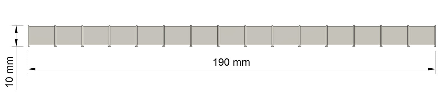 Der Bausatz besteht aus 5 Abschnitten à 190 mm Länge, also insgesamt 950 mm, und kann mit weiteren Elementen gleichen Typs erweitert werden.