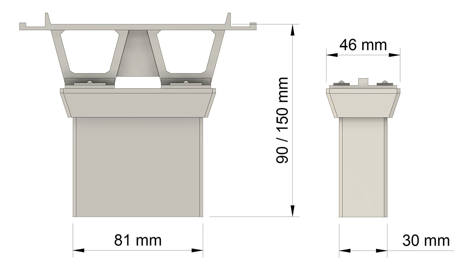- Anpassbar von mindestens 90 mm bis maximal 150 mm