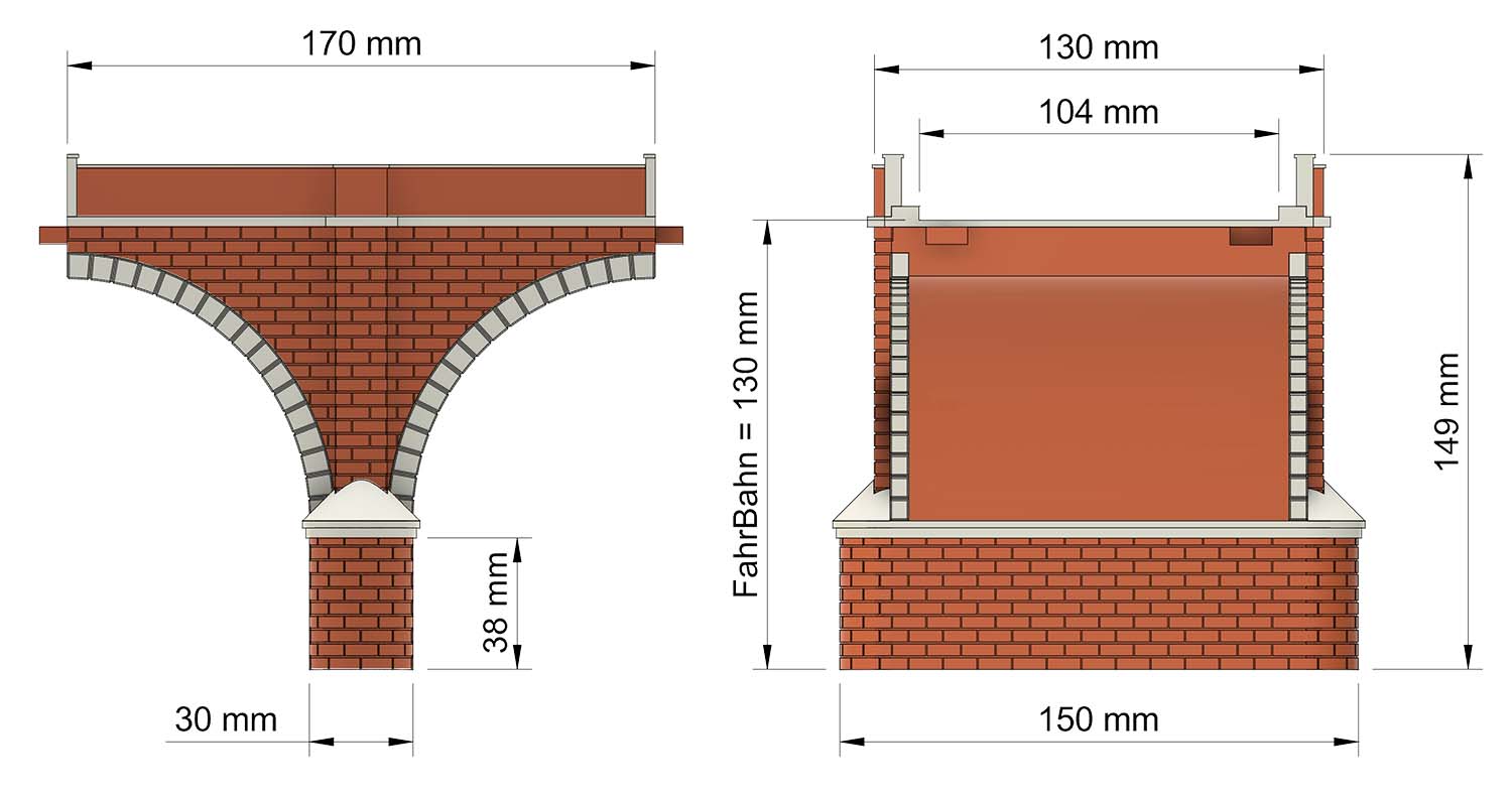 Großer Bogen für eine zweigleisige Steinbrücke – Maßstab H0