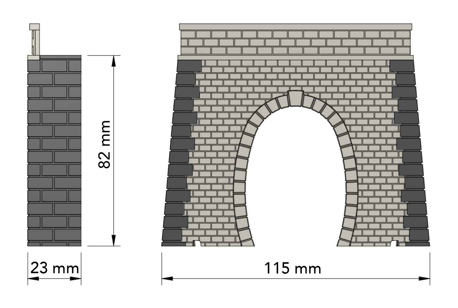 TT scale reproduction (1:120) of a pair of side columns to be combined with the single-track portals with initial code 1150