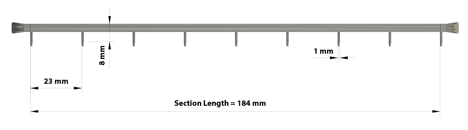 - N. 5 sections of 18.4 cm each, for a total length of 92 cm.