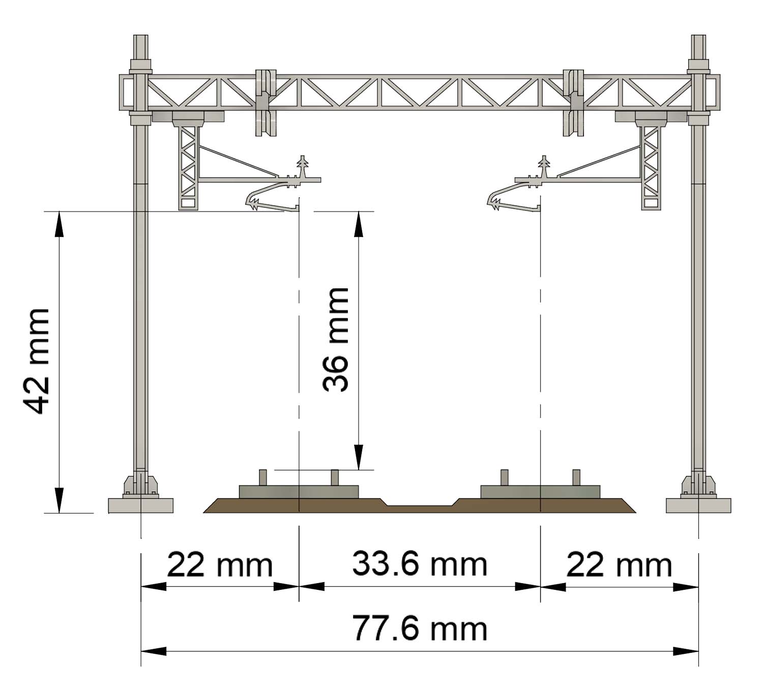 The product is supplied in kit form to adapt it to the required track layout and it is possible to cut the beam to size to use it with a single track. It is quick and easy to assemble and is suitable for layouts, dioramas and operational modules but with non-functional overhead line.