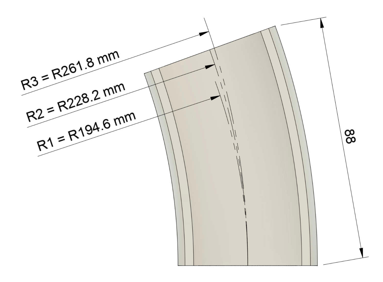 Adattarlo a linee con curve strette con raggio R1 = 194.6 mm, R2 = 228.2 mm, R3 = 261.8 mm, R3A = 295,4 mm (standard Fleischmann) ed è da abbinare al portale corrispondente per gli stessi raggi (codice iniziale 1250.R123). Ogni tunnel è lungo circa 88 mm ed è possibile allungarlo con altri elementi dello stesso tipo.