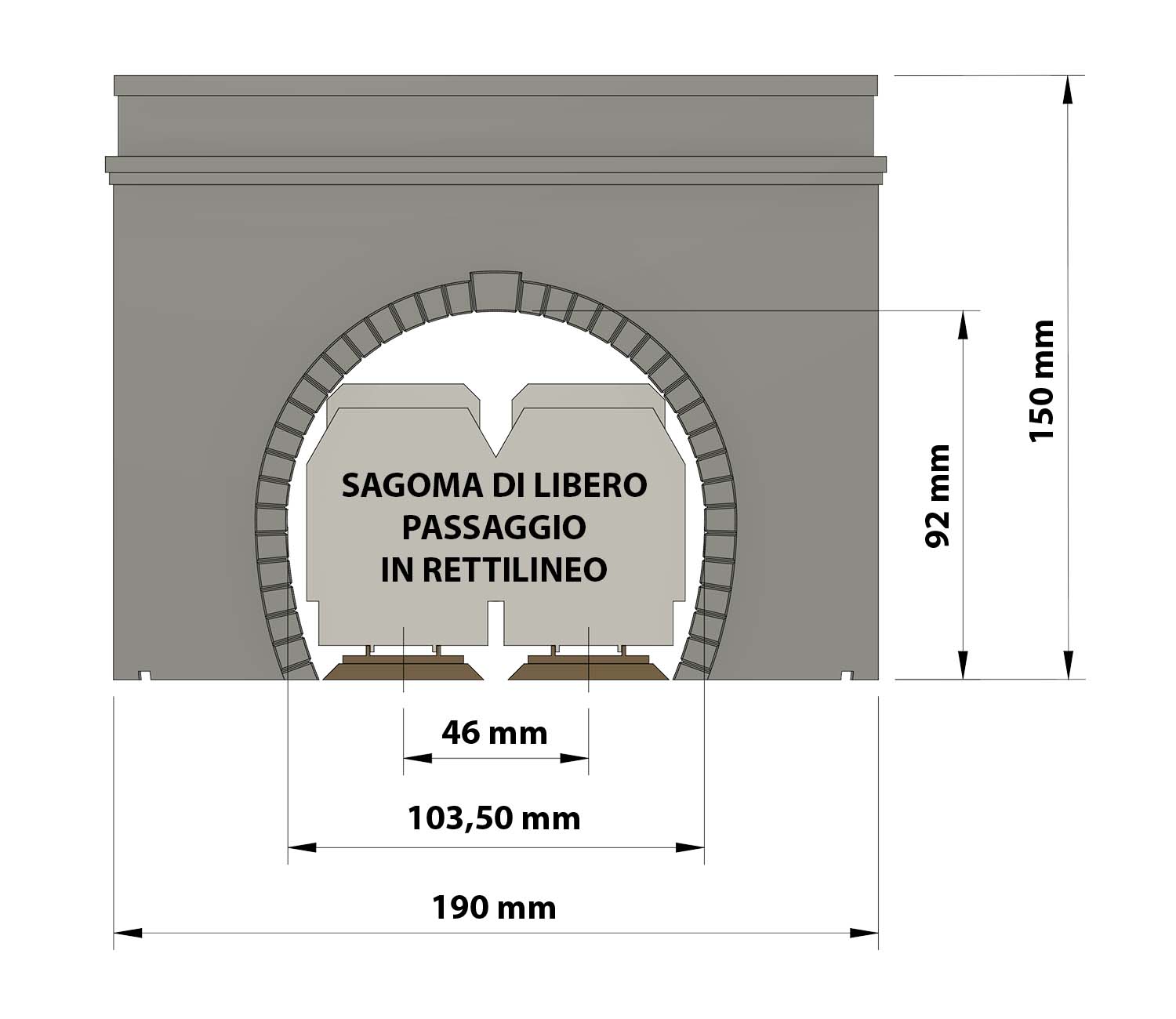 Il prodotto è pensato per essere abbinabile al tunnel codice 1061.R046 per rettilinei con interbinario di 46 mm e agli accessori come le colonne in pietre per portali con codice 1062 e ai muri laterali di contenimento codice 1063.