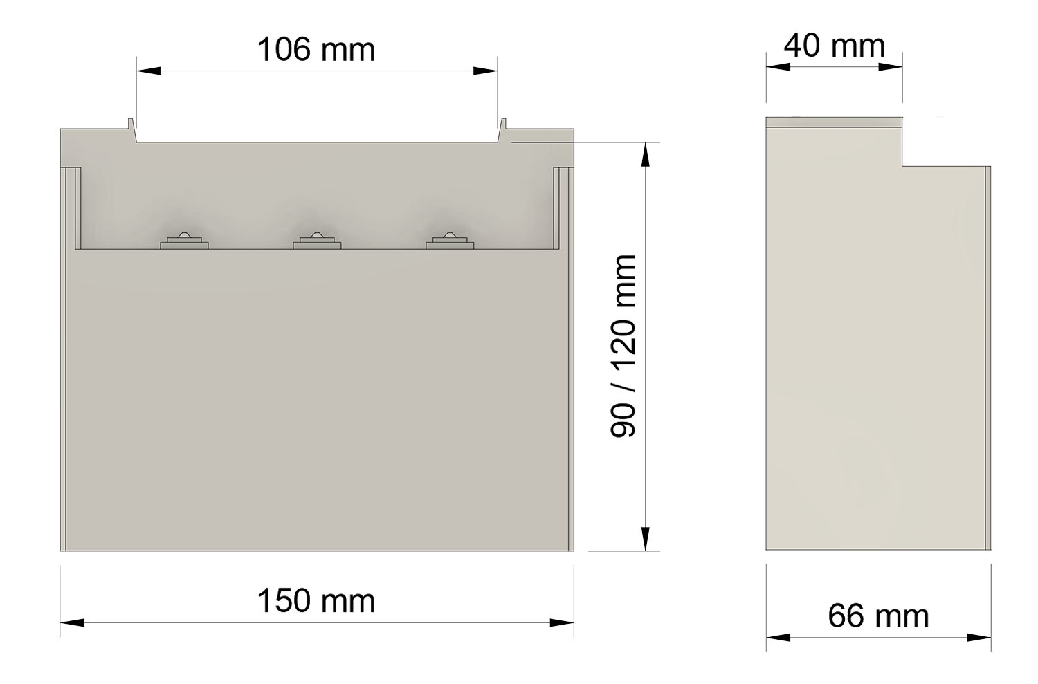 - Personalizzabile da un minimo di 90 mm a un massimo di 120 mm
