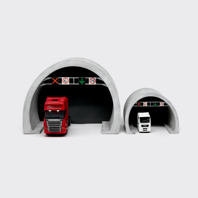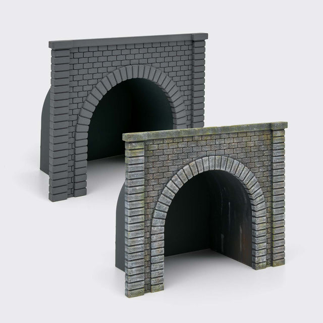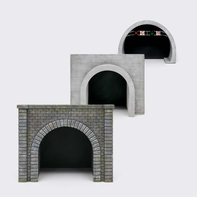 Riproduzione sia in scala H0 (1:87) che in scala N (1:160) di una serie di gallerie stradali di epoche e costruzioni diverse.